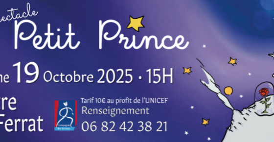 29 Sep 2025 Spectacle LE PETIT PRINCЕ d’Antoine de Saint-Exupéry par la Compagnie des Arceaux. Mise en Scène: Martine Ladoire-Tornil DIMANCHE 19 OCTOBRE – 15h THÉÂTRE JEAN FERRAT...